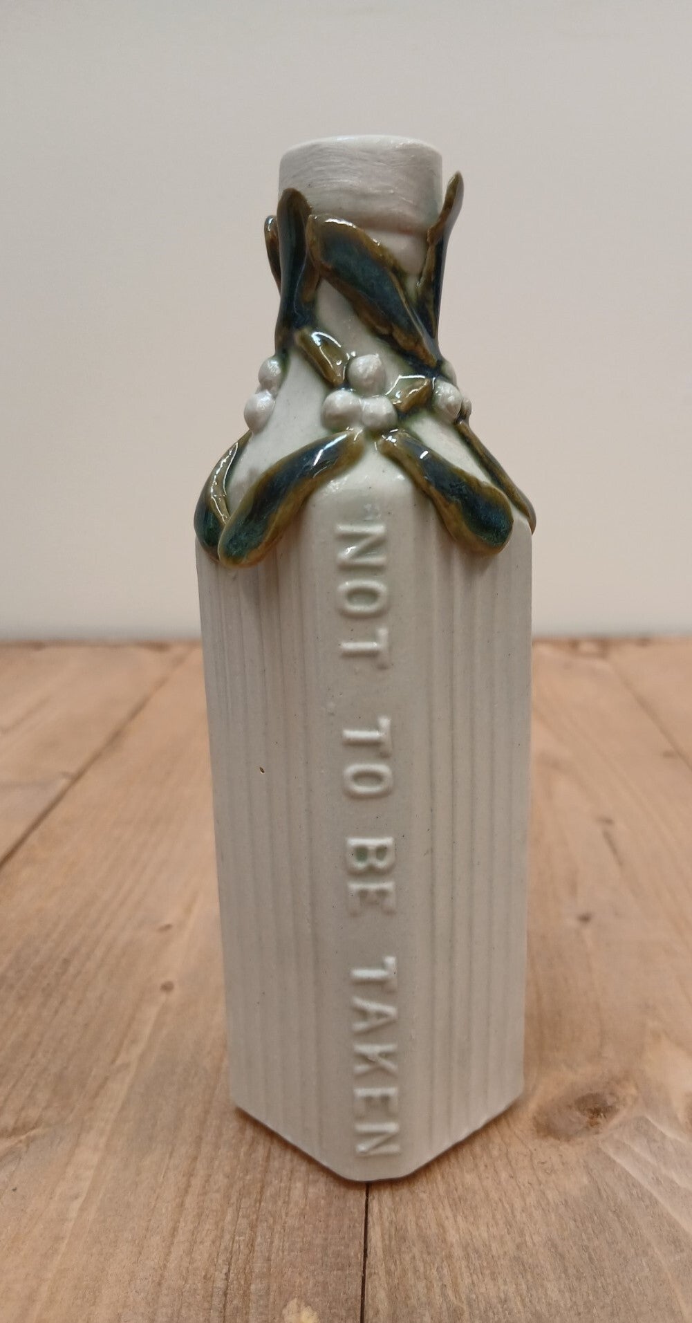 Fully glazed slipcast stoneware poison bottle (the bottle reads "Not To Be Taken") - sourced from a local bric-a-brac store.