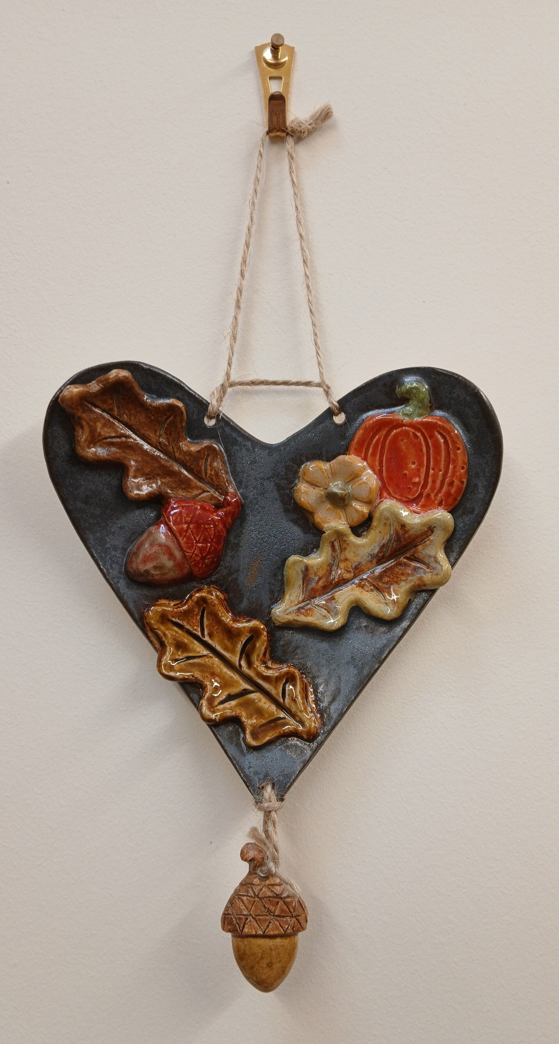 Autumn themed with Leaves, Acorns and a Pumpkin.