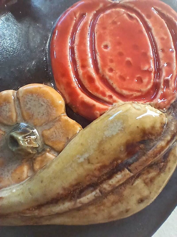 Handmade ceramic oval hanging wall plaque.