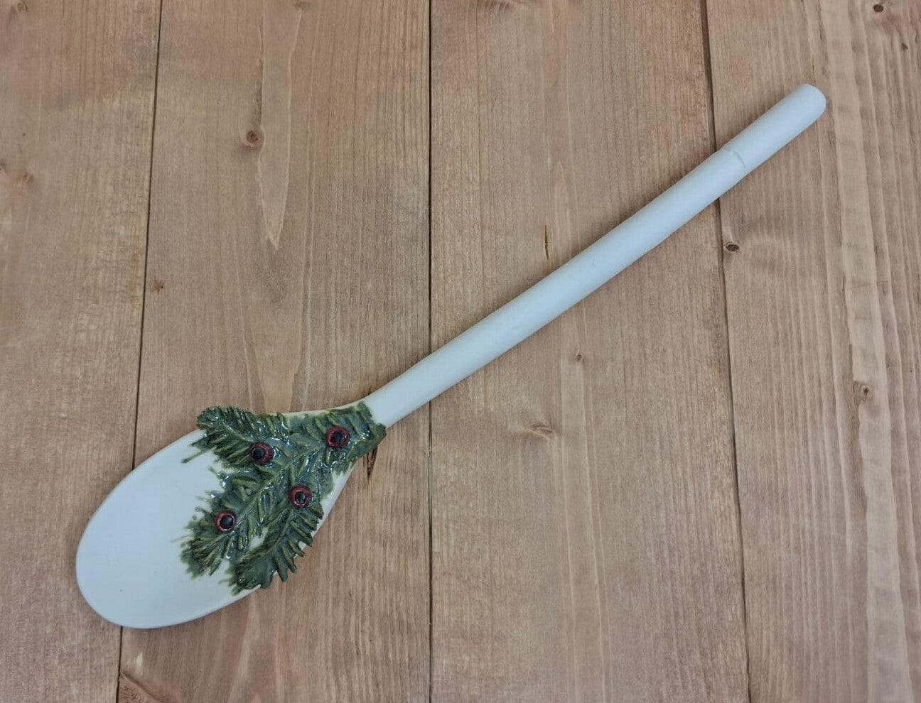 Unglazed slipcast porcelain mixing spoon, originally used in my kitchen. The unglazed spoon is then polished to create a pleasing eggshell texture which complements and contrasts with the glazed elements of the piece.